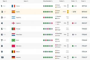西班牙因此遭到法国反超,跌至世界第2位,排名欧洲区第2。