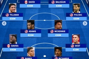 中场:蒂尔曼(3000万欧)、泰勒·亚当斯(2500万欧)、麦肯尼(3000万欧)、普利西奇(5000万欧)