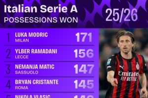 附本赛季意甲夺回球权榜: